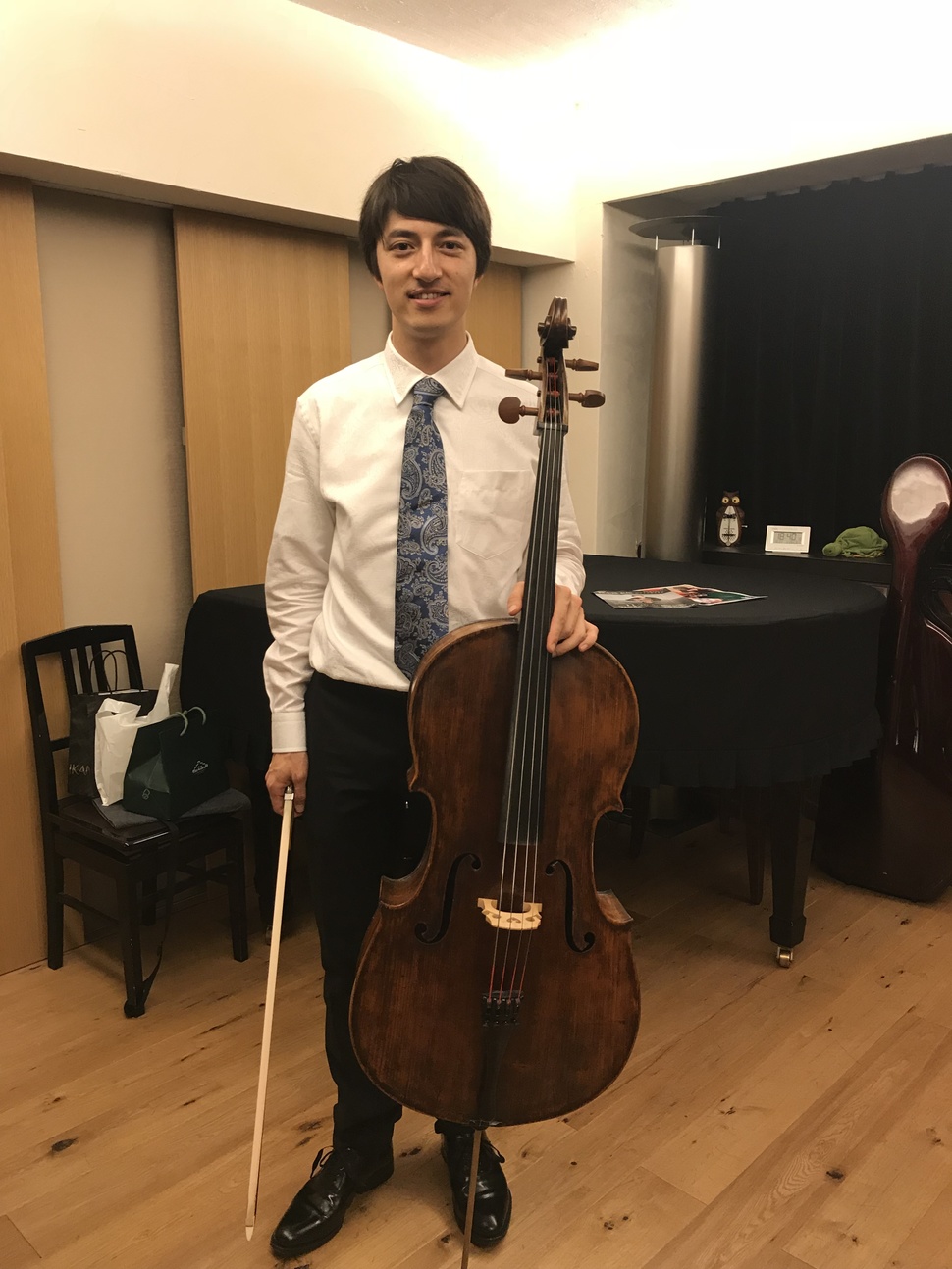 アメリカ・ミシガン州生まれ。4才よりチェロを始め、高校在学中に Tanglewood, Indiana University, Interlochen の夏期プログラムに参加。横浜インターナショナルスクール卒業後、米イェール大学に進学、なんと哲学・政治学を二重専攻という秀才。在学中、チェリストAldo Parisot氏のオーディションに合格し、イェール音楽院のOle Akahoshi氏にチェロを、Wendy Sharp氏に室内楽を師事し、現在はチェリストとして東京、鎌倉、長野などを中心に活躍中で、昨年サントリーホール等で無伴奏バッハチェロリサイタルを開催するなど、バッハの演奏と解釈には定評があります。