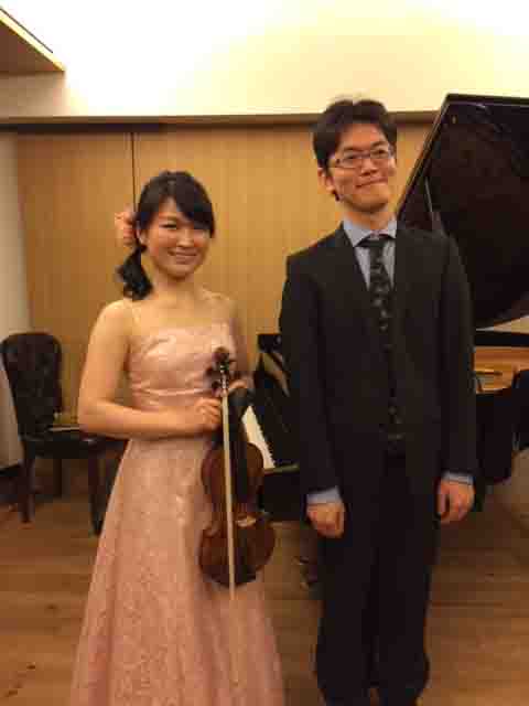 続く2曲目は、ピアノの山中歩夢さんを迎え、プログラムに無かったベートーベンのヴァイオリンソナタ第3番1楽章。会場は一気にキラキラと明るい雰囲気に包まれました。