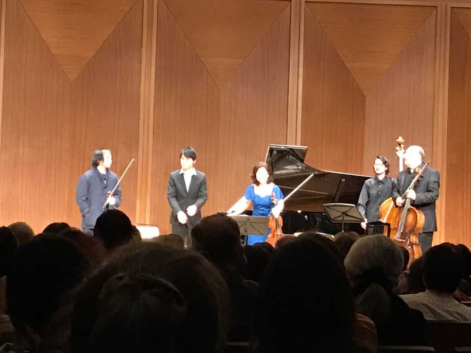 休憩をはさみ、鈴木舞さんと實川風さんによるヴァイオリンとピアノのためのソナチネ第1番。そしてピアノ五重奏曲「鱒」清水高師先生、大野かおる先生、アントン・ニクレスという円熟したオーソリティーと、若手の實川さん・大川瑳武(cb)の共演で、名曲を存分に聴かせてくれました。