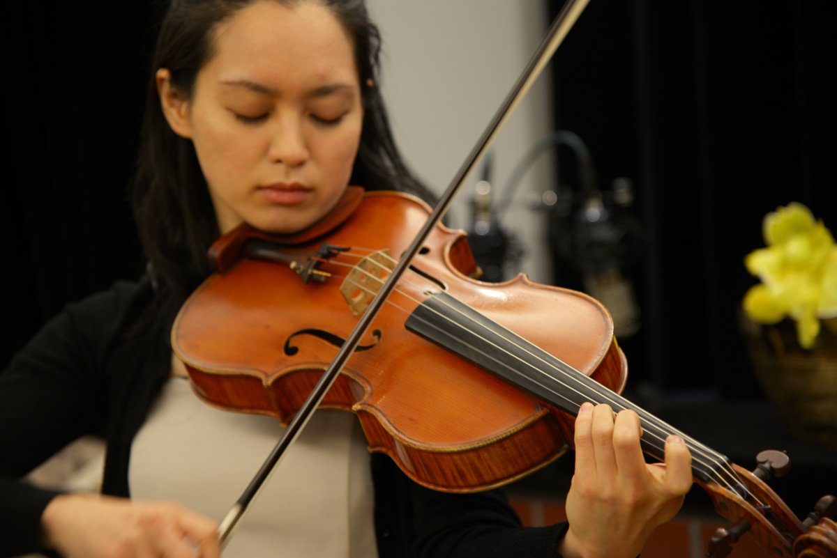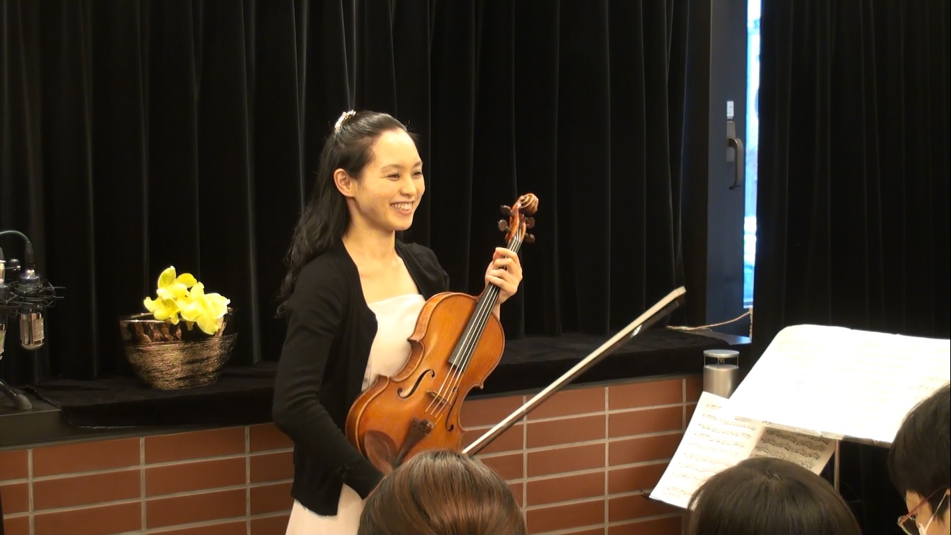 ヴィオリストの高橋梓さんをお迎えしました 。いよいよ公演開始です。あまりに近い観客を前に、最初はちょっと緊張気味かな?ヴィオラのソロを聴く機会はなかなか無いものです。梓さん、その中でも選りすぐりの曲を披露されました。まず始めはカンパニョーリ作曲・41のカプリスより第32番 一曲弾き終わったばかりなのに、会場はもうすっかり梓さんの世界に。周囲の誰もが一目置く博識の彼女です、作曲家や作品の紹介はとっても深く興味深いものばかり!ヴュータン:無伴奏ヴィオラのための奇想曲、バッハ(コダーイ編曲) : ファンタジア・クロマティカ 。そしてヒンデミットの無伴奏ヴィオラソナタ作品25-1梓さんの手にかかると、ヴィオラとはこんなにも魅力的な楽器なのかと驚くばかり。 艶やかな音色に包まれる時間は至福のひとときです。