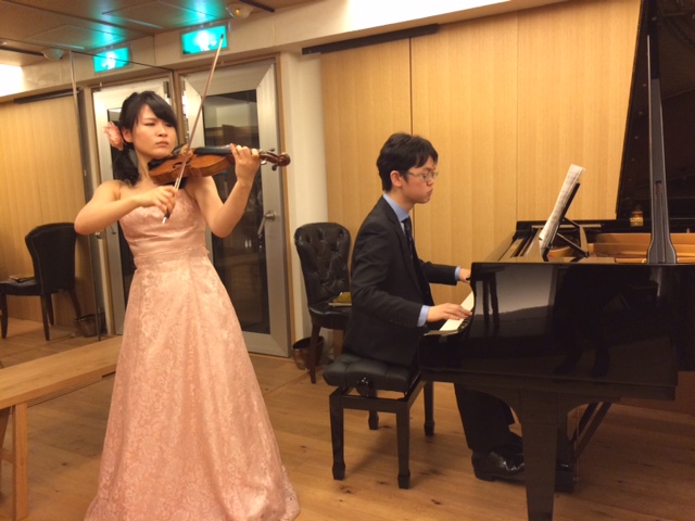 3曲目は、ブラームスの3曲あるソナタの中で、演奏される機会は少ないものの、春花さんのお気に入り2番です。コンチェルティーナのスタインウェイに合わせてみたかったとの選曲。ハンガリーに共に留学されている山中さんとの息もピッタリで、美しいDUOを聴かせて下さいました。