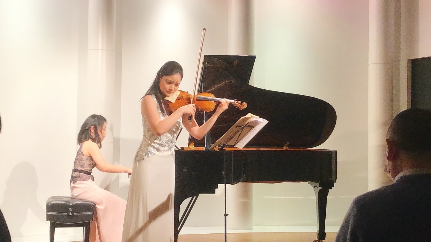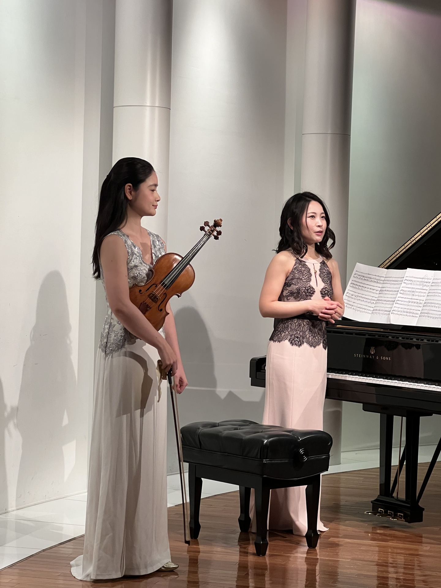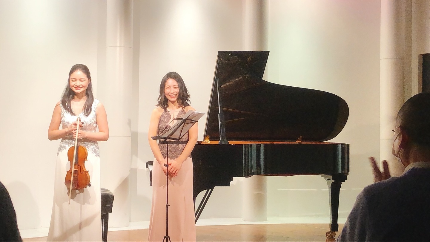 一曲目のヨアヒム・ラフはスイスの作曲家。11曲の交響曲をはじめとして、室内楽曲などに多くの作品を残していますが、初期の作品はピアノ曲が多く、あまり演奏される事は少ない作曲家です。ヴァイオリンとピアノのための 『6つの連作小品』作品85(全6曲:1.行進曲 2.パストラール 3.カヴァティーナ 4.スケルツィーノ 5.カンツォーネ 6.タランテラ)の中から3曲を演奏していただきました。現代では取り上げられていない曲を取り上げたいとお2人で相談して取り組んだとの事で、技術的にも難しい小品に、意気込みが感じられました。